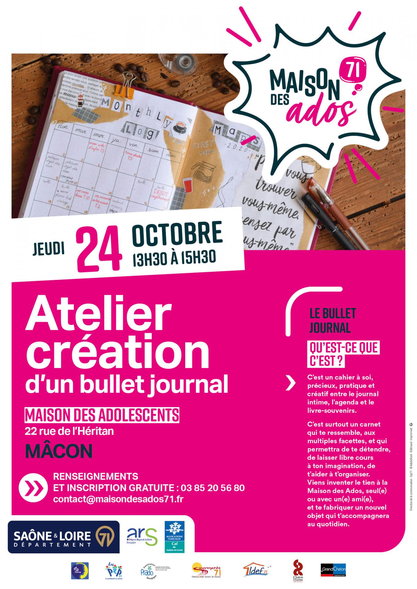 - Le jeudi 24 octobre 2024 Un atelier « Bullet Journal »